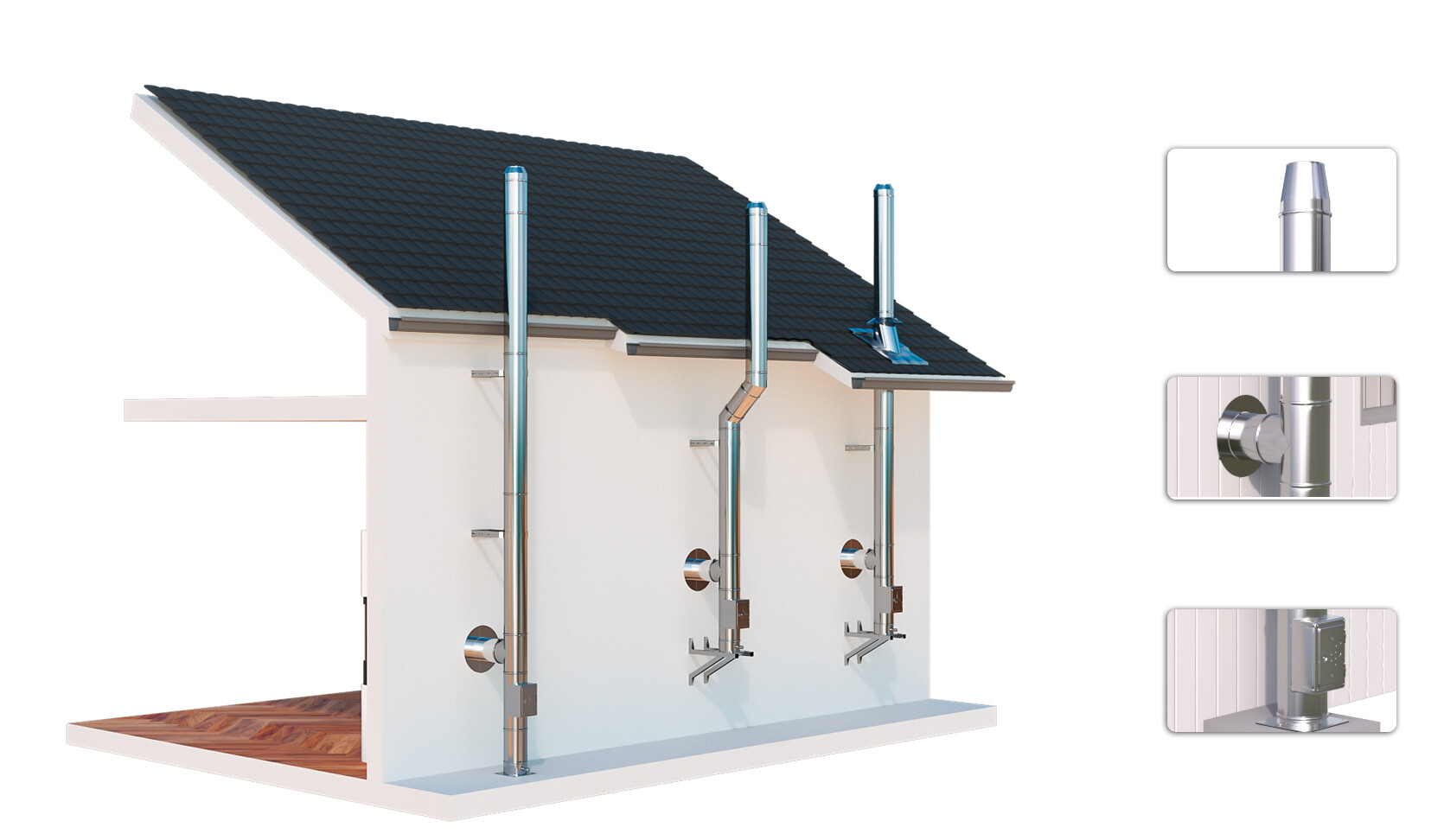 Unsere doppelwandigen Edelstahlschornsteine entsprechen höchsten